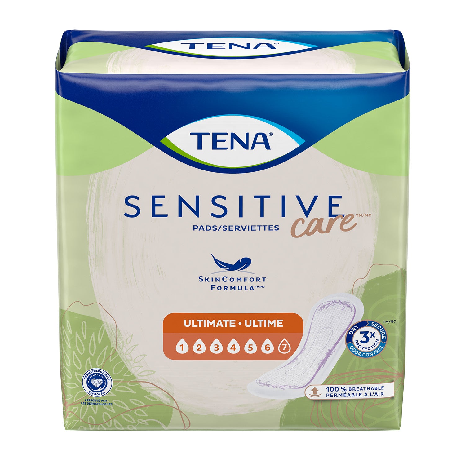 TENA Intimates™ Ultimate Regular Incontinence Pads with ProSkin™ Technology are now 100% breathable to help protect your sensitive, intimate skin. ProSkin™ Technology includes a soft top layer and exclusive 3D technology to quickly wick fluid away - helping to keep your skin protected. Designed with triple protection against bladder leaks, odor, and wetness for heavy stress or surge bladder leakage. As opposed to period pads, these absorbent urine pads protect against heavy leaks to help keep you dry and protected throughout your day. TENA Intimates™ Ultimate pads can also be used for women experiencing postpartum incontinence.